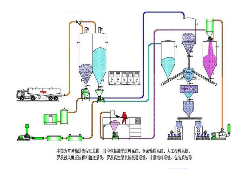 3、粉體氣力輸送系統(tǒng)在改造和擴(kuò)展方面很靈活,粉體輸送系統(tǒng)幾乎可以將產(chǎn)品輸送到管道所能到達(dá)的任何地方。